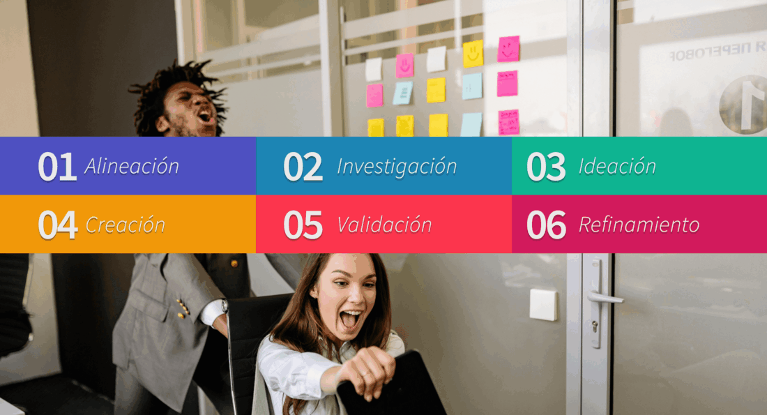 Para las fases de investigación, ideación, creación y validación, se recomienda Design Thinking, que es un método de trabajo donde se involucran a todas las personas encargadas de diseñar y construir un producto, que junto con sus usuarios buscan la mejor forma de dar solución a los problemas.